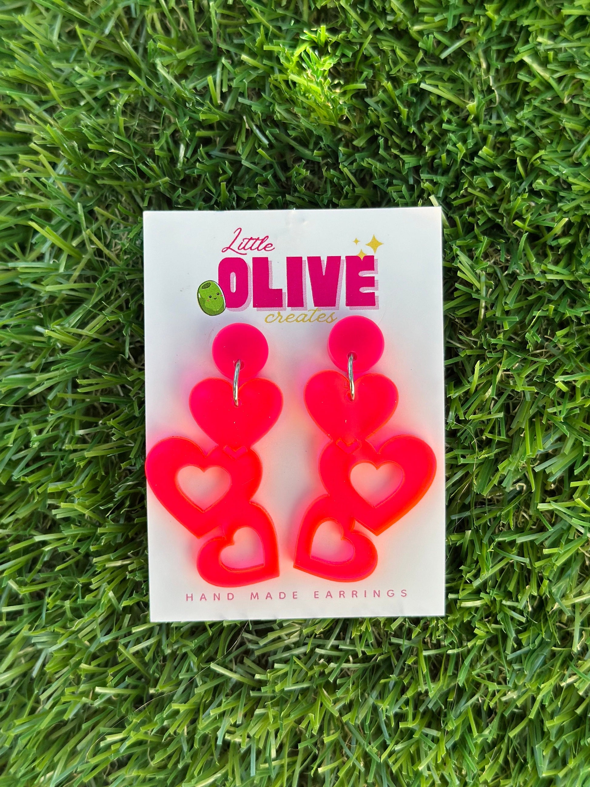 **"Barbie Inspired Glitter Trio Heart Dangle Earrings"**