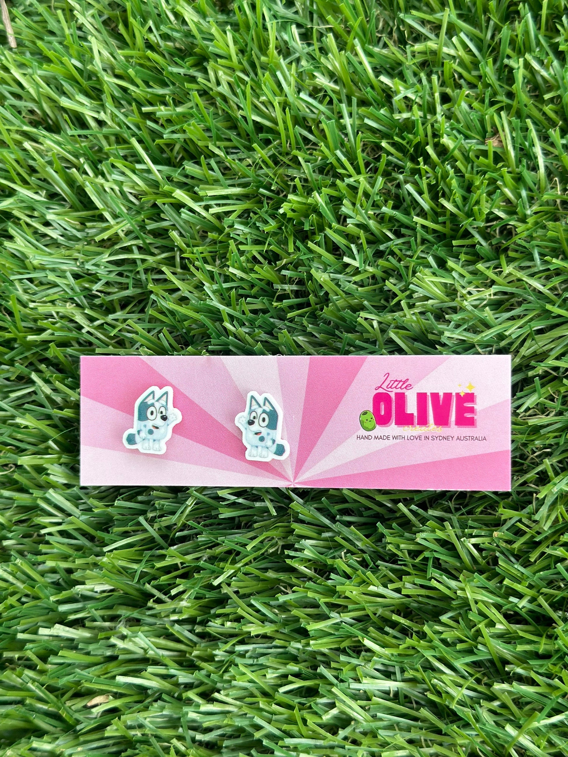 Meet Muffin! Inspired by the lovable character from Bluey, these adorable earrings are available in both studs and dangles, so you can choose your preferred style. Crafted with stainless steel hypoallergenic posts, these earrings ensure good detail and comfort. The dangle size is approximately 50mm, while the stud top measures 15mm. Don't miss out on adding some charm to your look with these delightful earrings! 🌟
