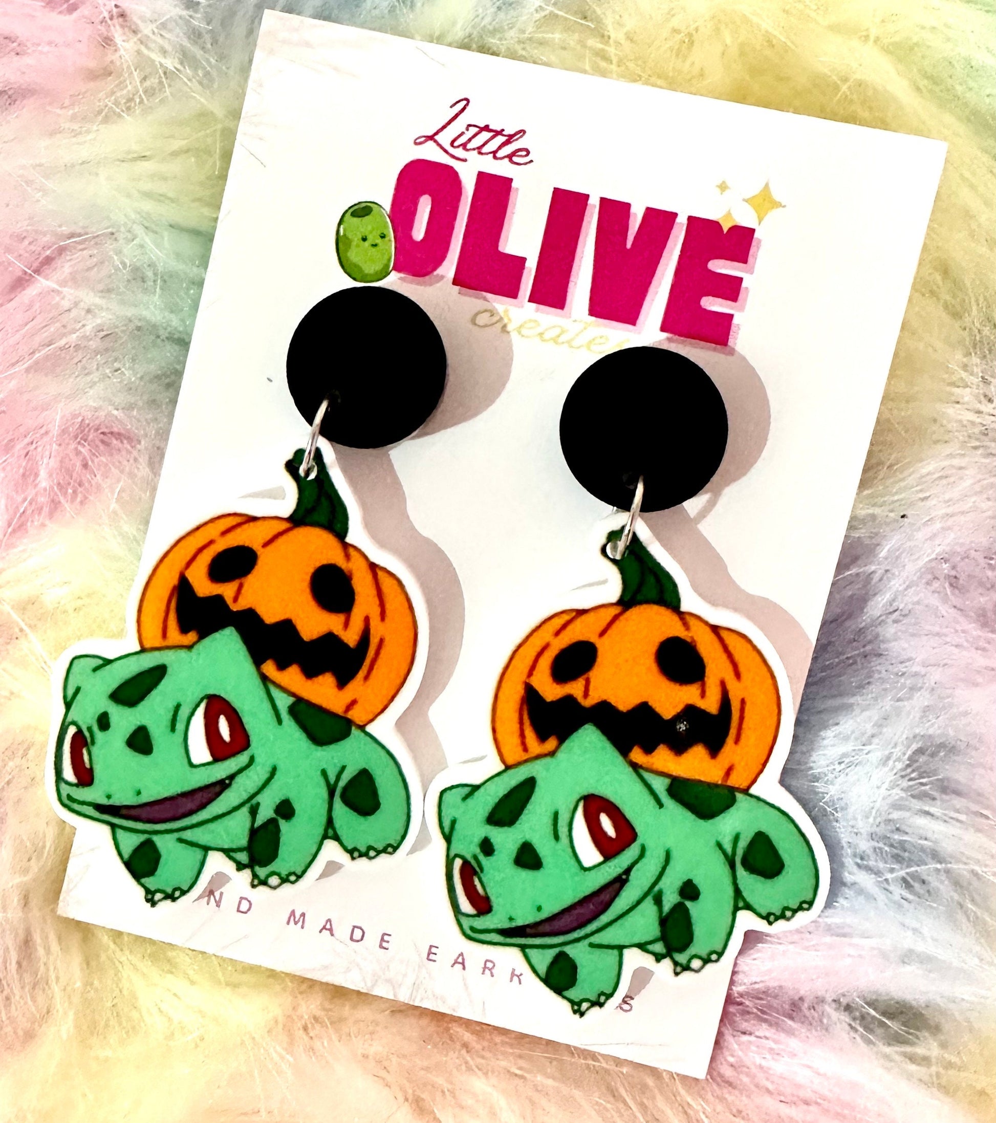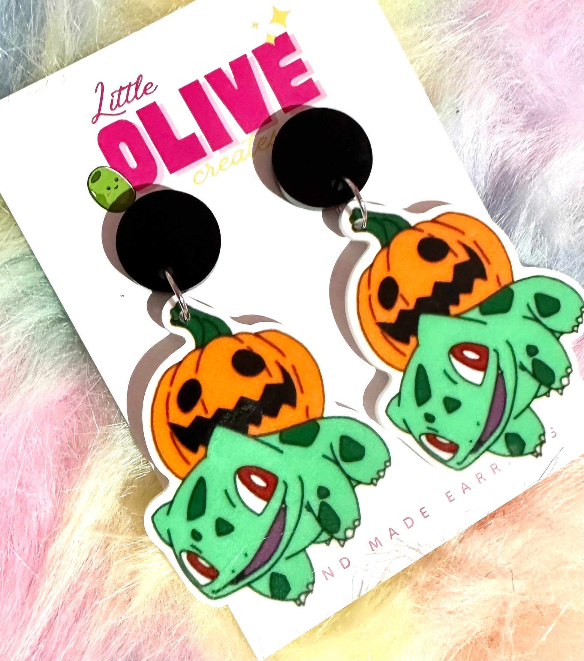 🌟 **Handcrafted with Love:** Each pair of these earrings is lovingly handcrafted by skilled artisans. From shaping Bulbasaur's lovable features to painting the intricate pumpkin costume, every detail is created with care and precision.