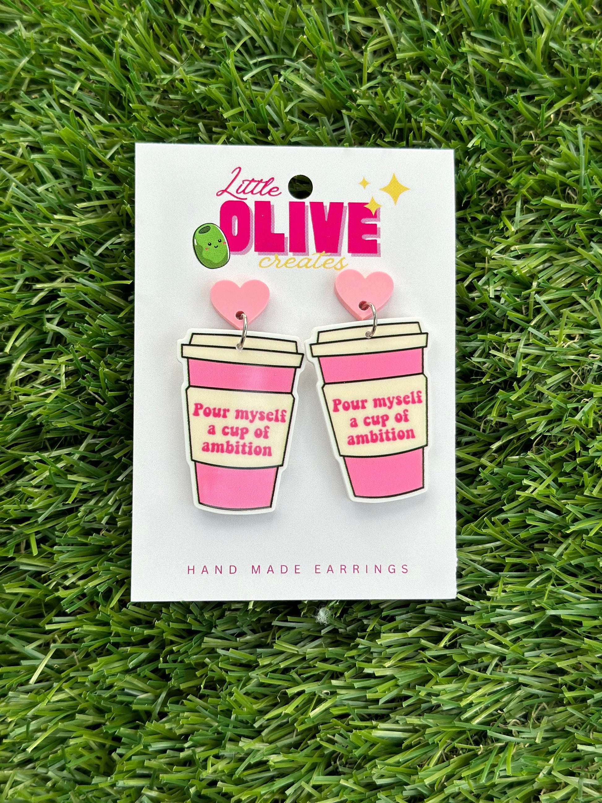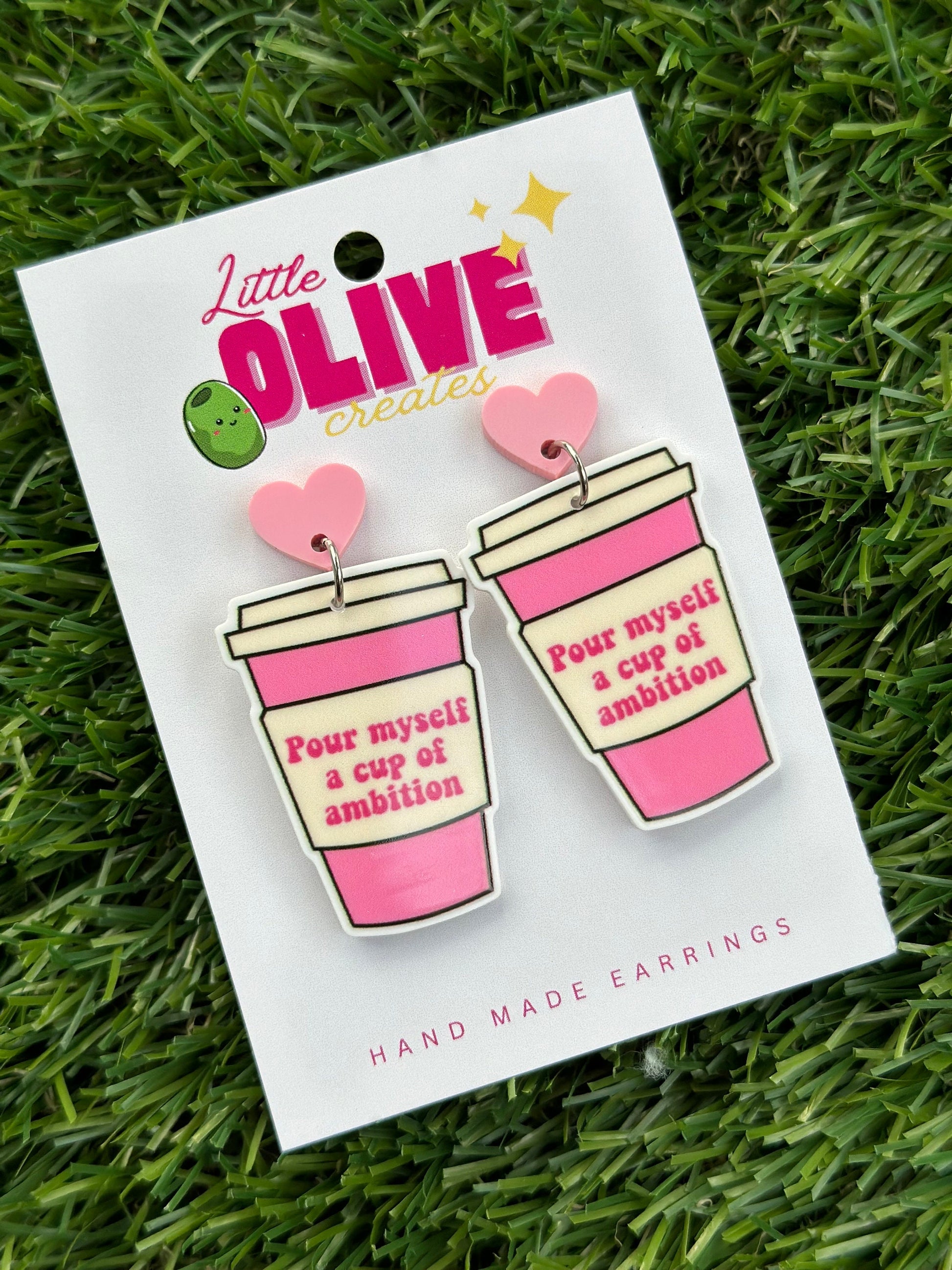 Inspired by the iconic 9-5 lyrics of Dolly Parton, these earrings are perfect for coffee lovers and go-getters alike! Let Dolly's words inspire you to pour yourself a cup of ambition every morning.