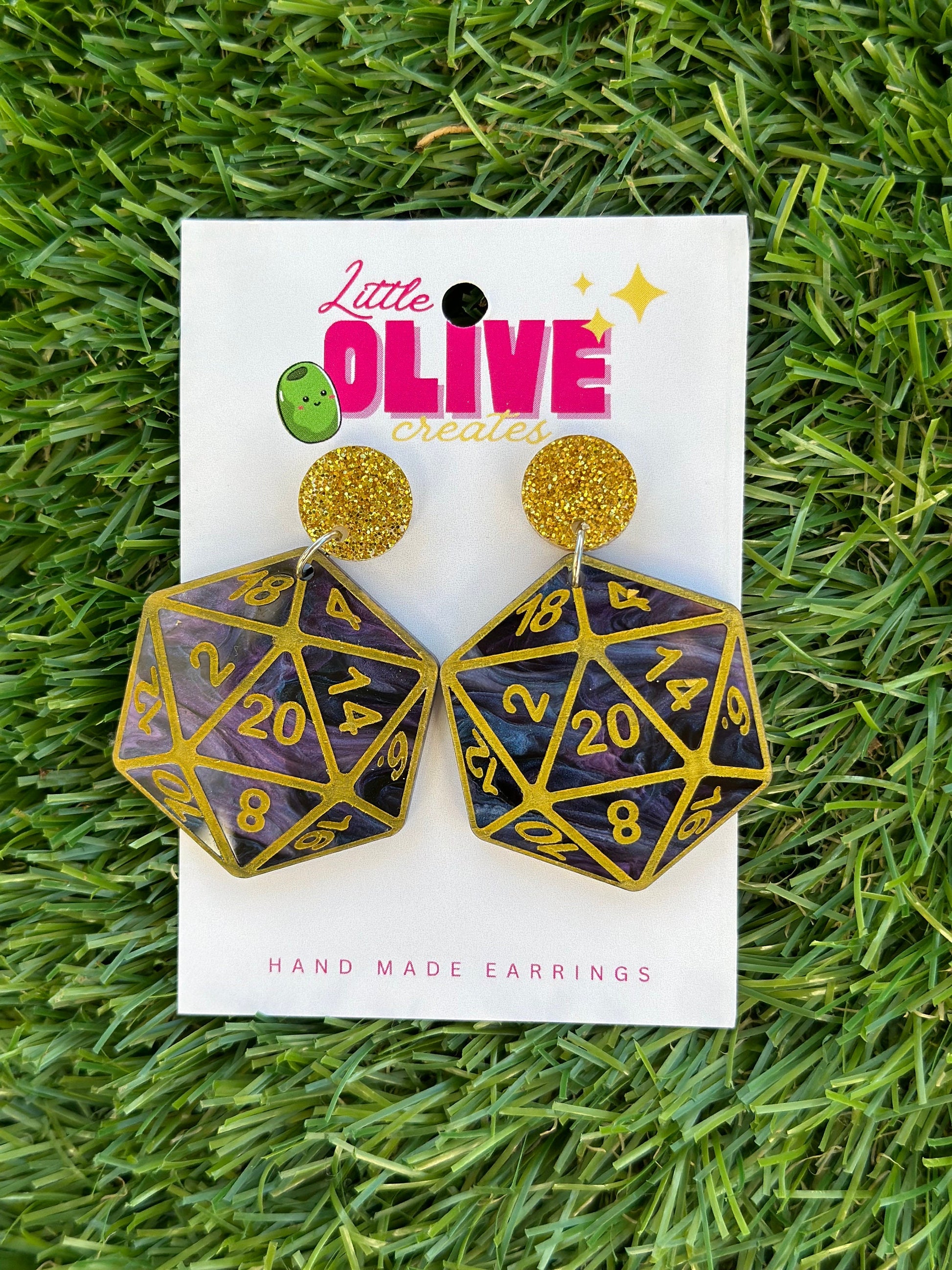 Empower Your Quest with Dungeons and Dragons Hand Painted Acrylic D20 Dice Earrings! Choose from 3 Designs!