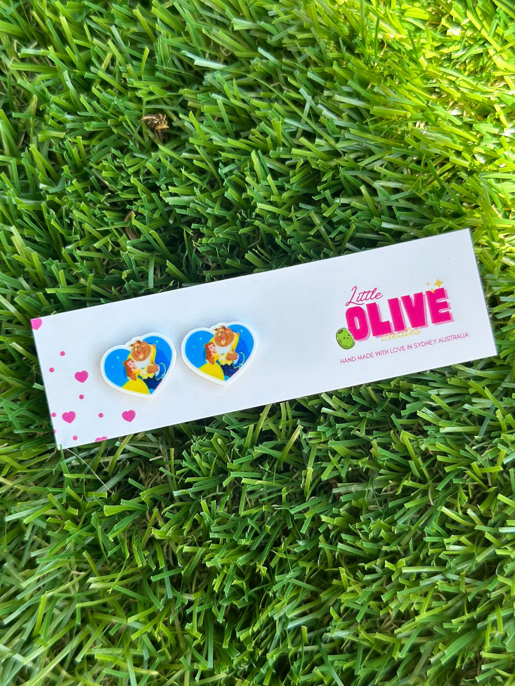 Embrace the enchantment of Beauty and the Beast with these adorable stud earrings! Crafted with stainless steel hypoallergenic posts, these earrings ensure both style and comfort. Each stud measures approximately 15mm, perfect for adding a touch of magic to any outfit.