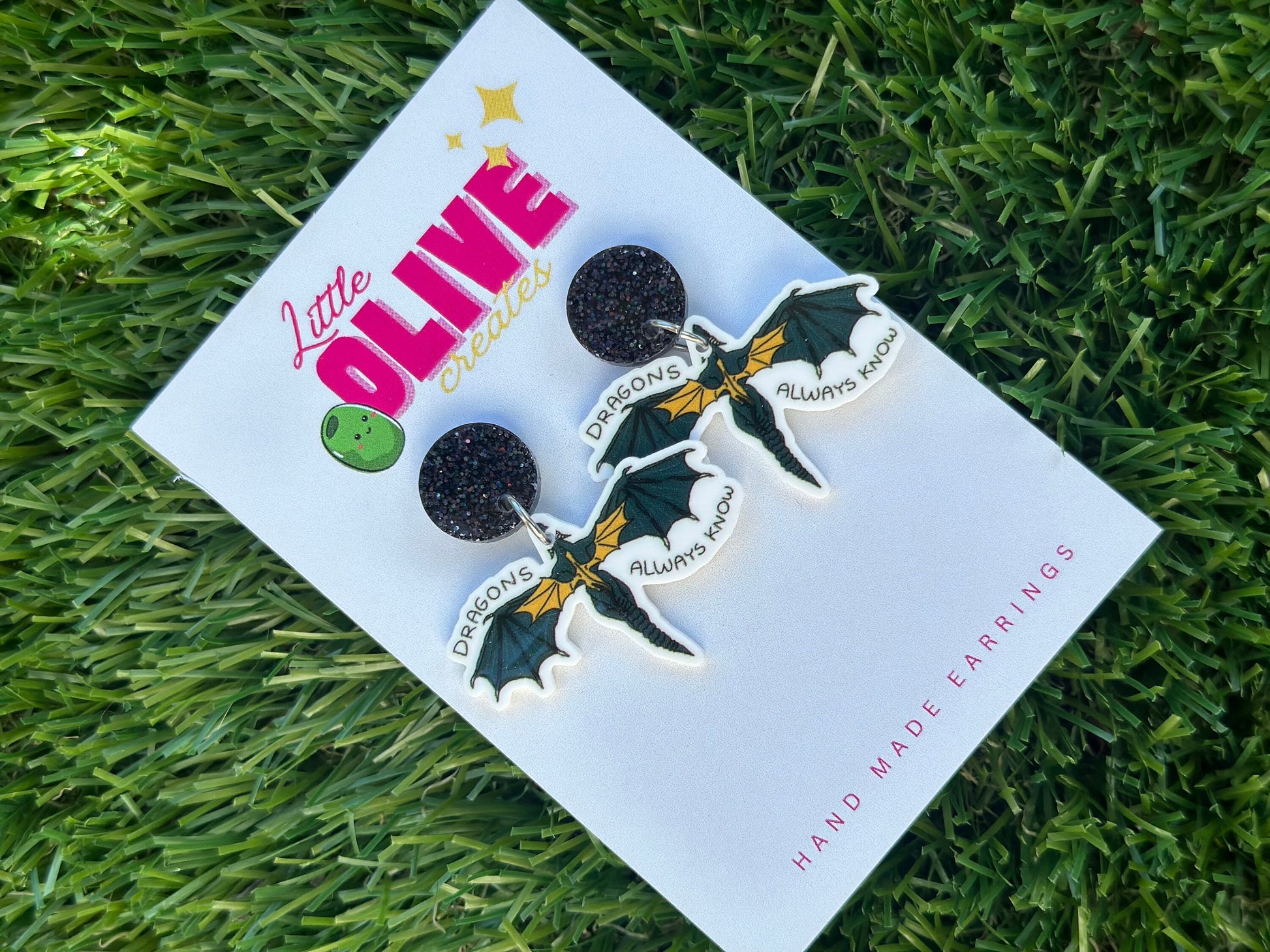 Step into the realm of fantasy with our mesmerizing "Dragons Always Know" dangle earrings, inspired by the Fourth Wing.
