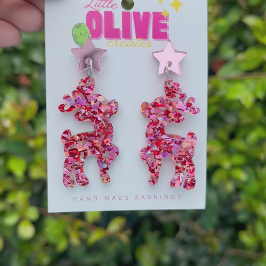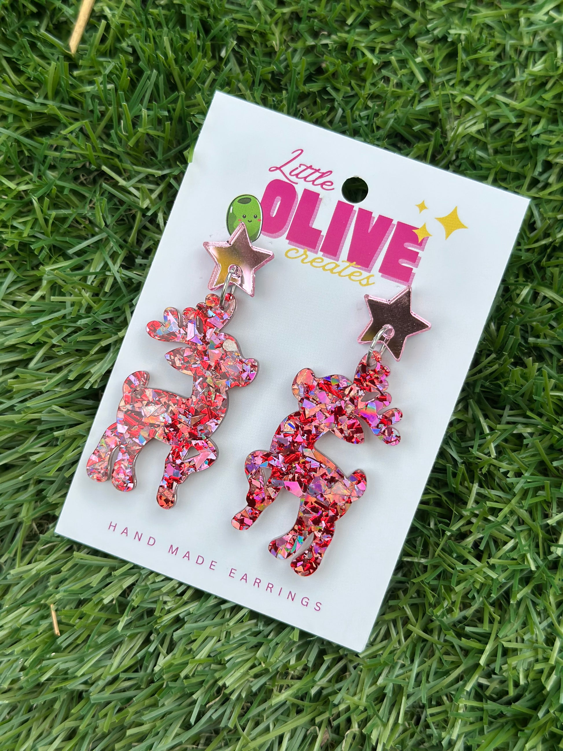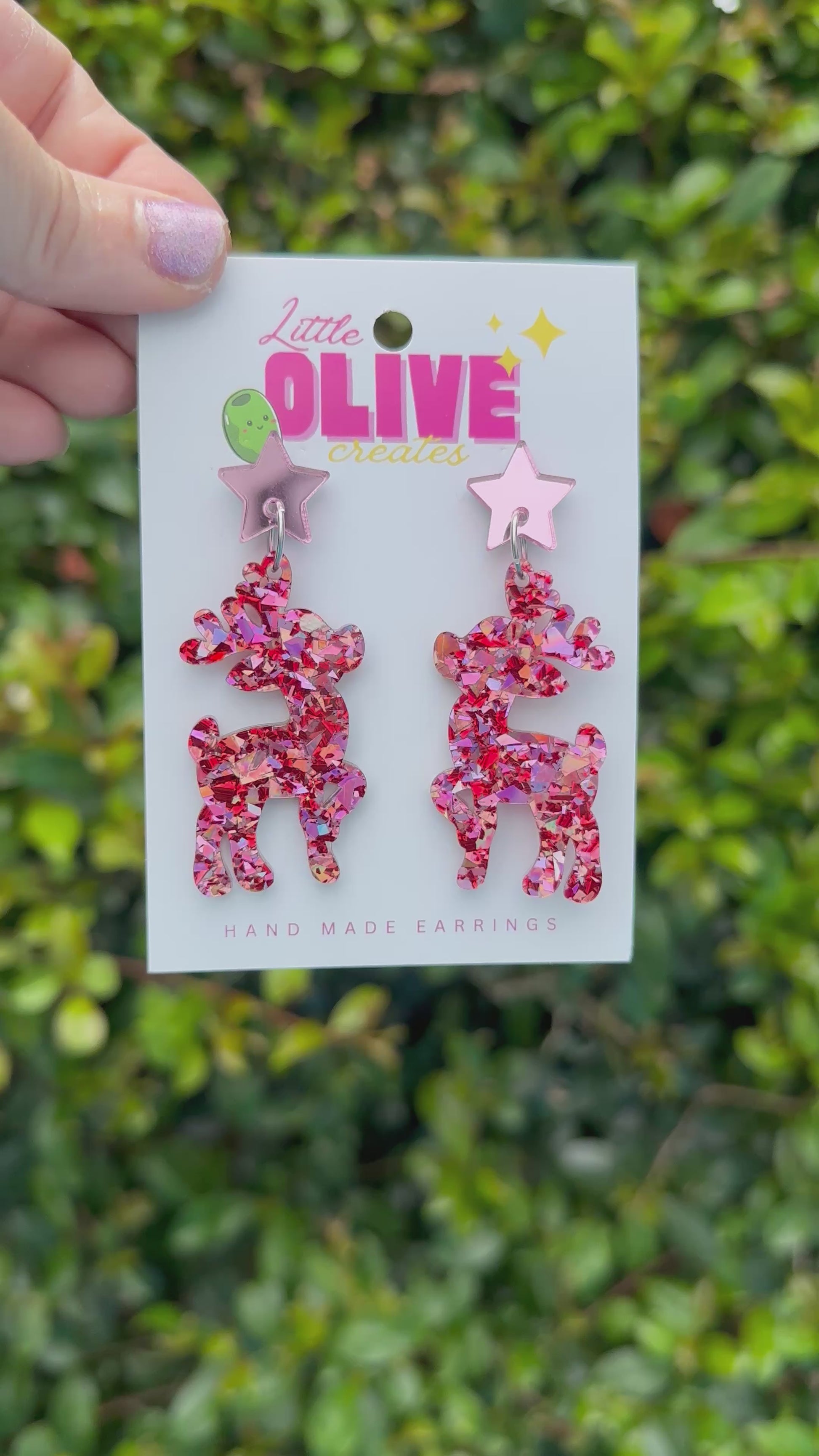- **Design:** Charming dangle earrings featuring a reindeer design with confetti glitter accents for a festive look.