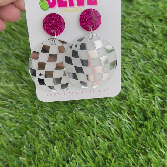 Mirror Disco Ball Dangle Earrings - Dance Floor Delight, Sparkling Fun