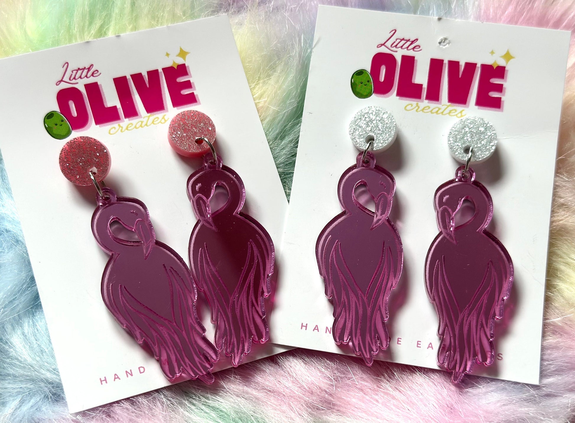 Pink Mirror Flamingo Dangle Earrings - Elegant Statement Jewellery