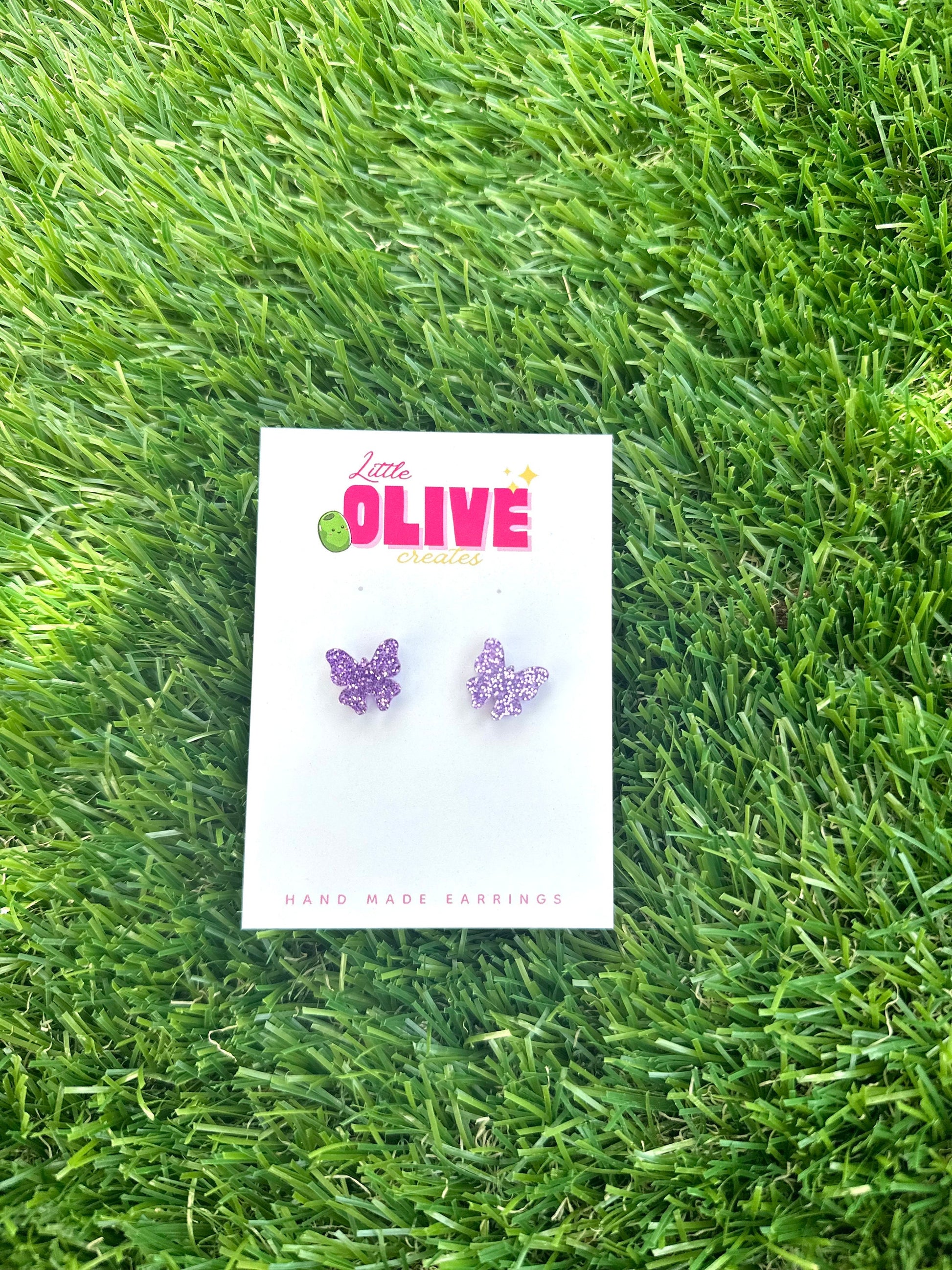 "Purple Glitter Butterfly Stud Earrings - Perfect Gift for Girls"