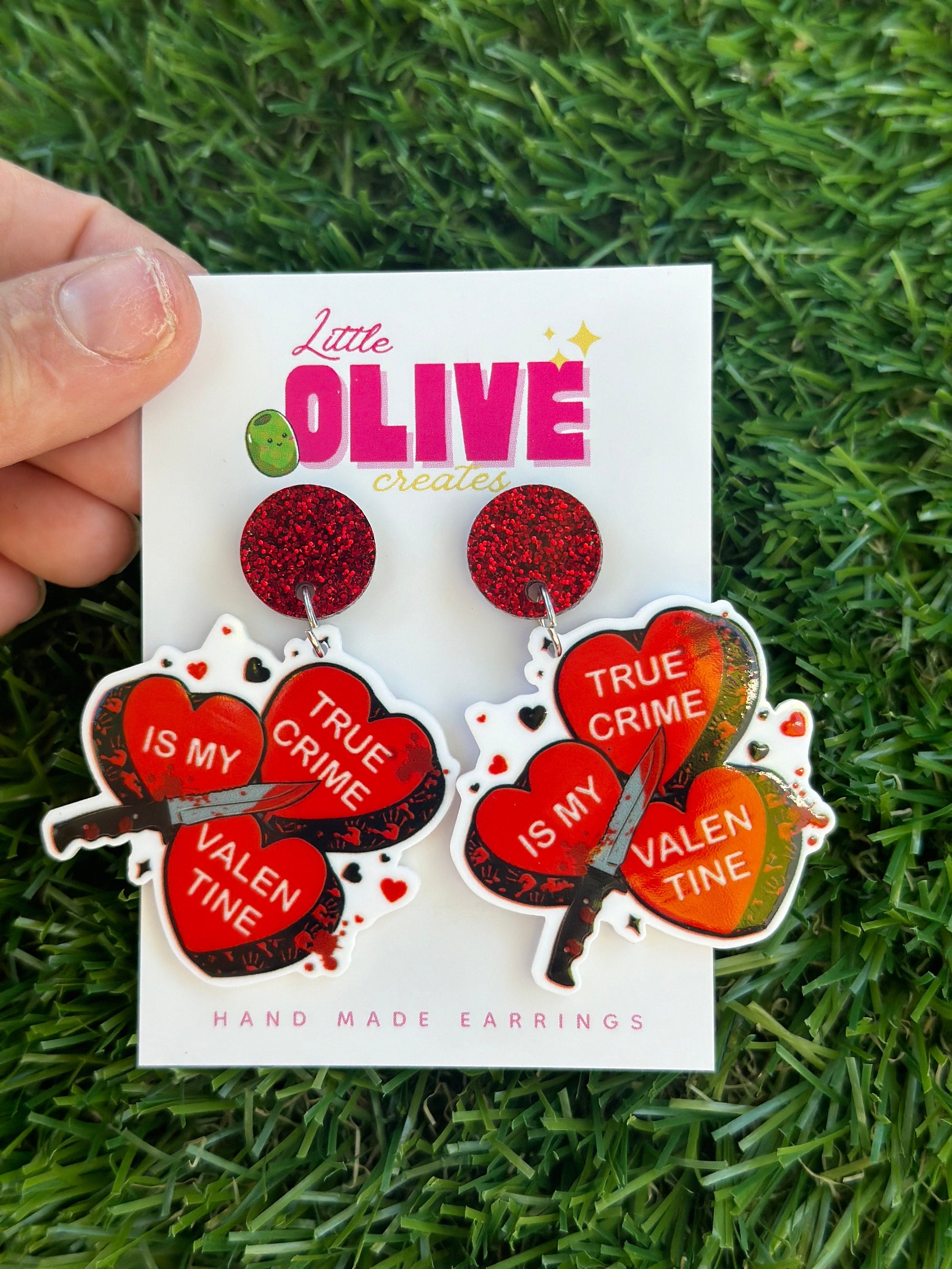 "Declare Your Rebellion Against Cupid: True Crime is My Valentine Earrings 💔🖤