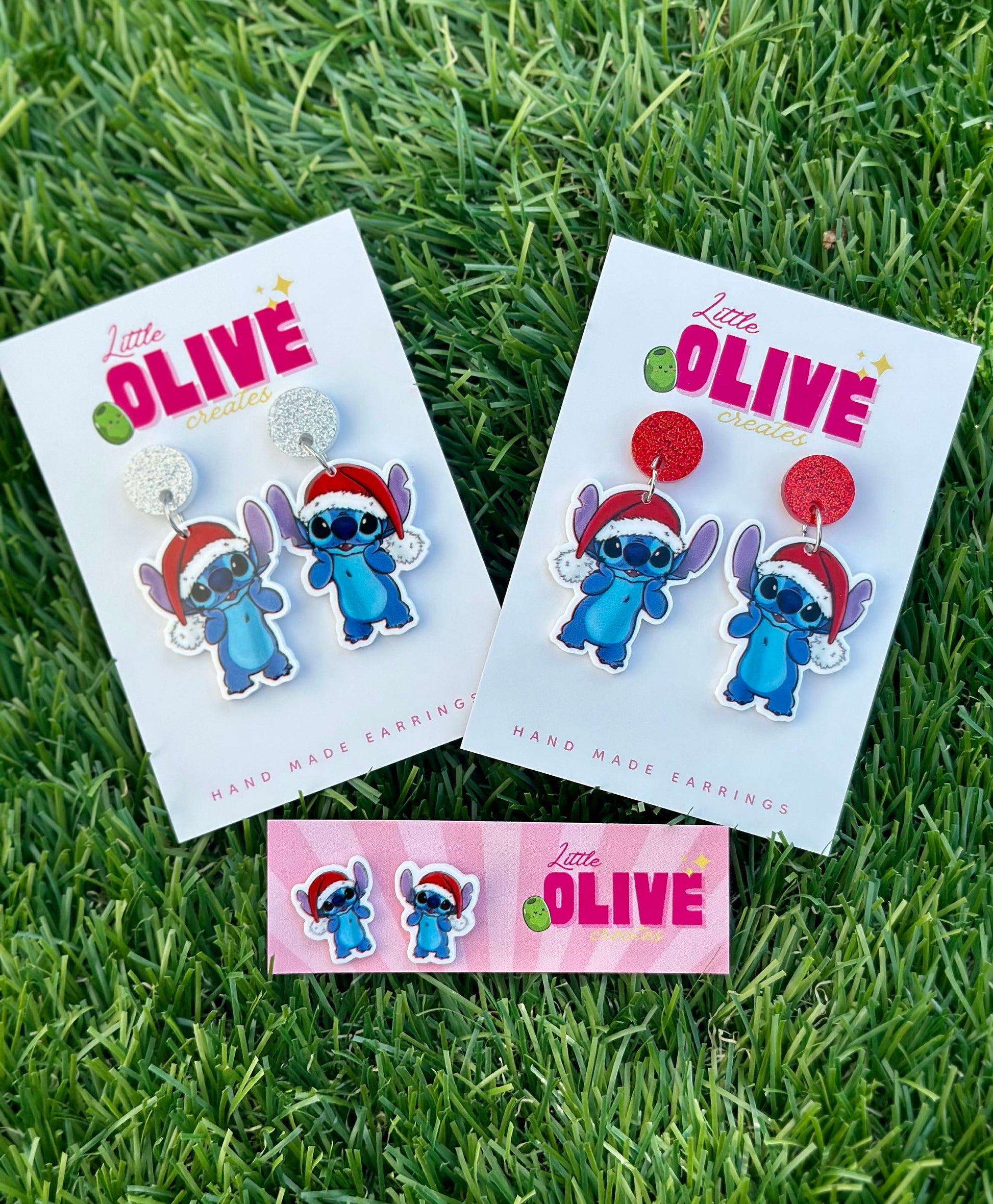 Get ready to jingle all the way with our Santa Stitch Earrings, available in both stud and dangle styles to suit your preference.