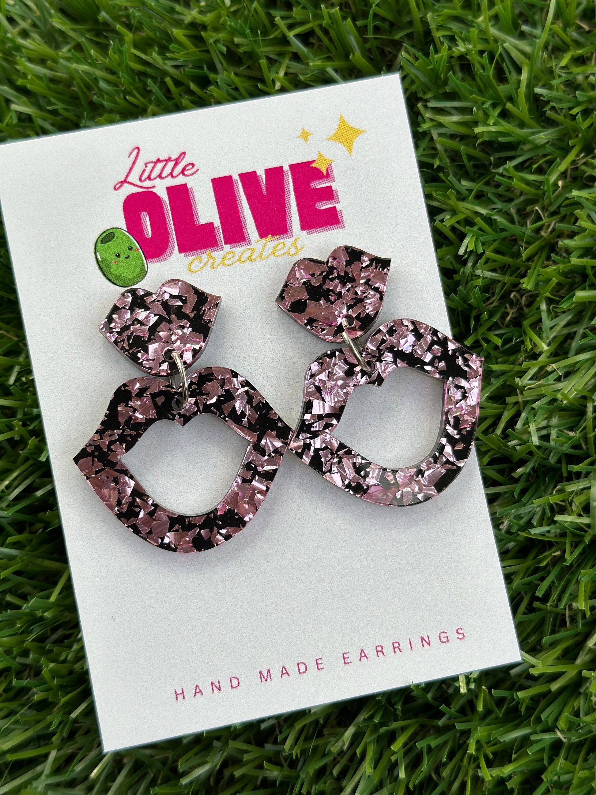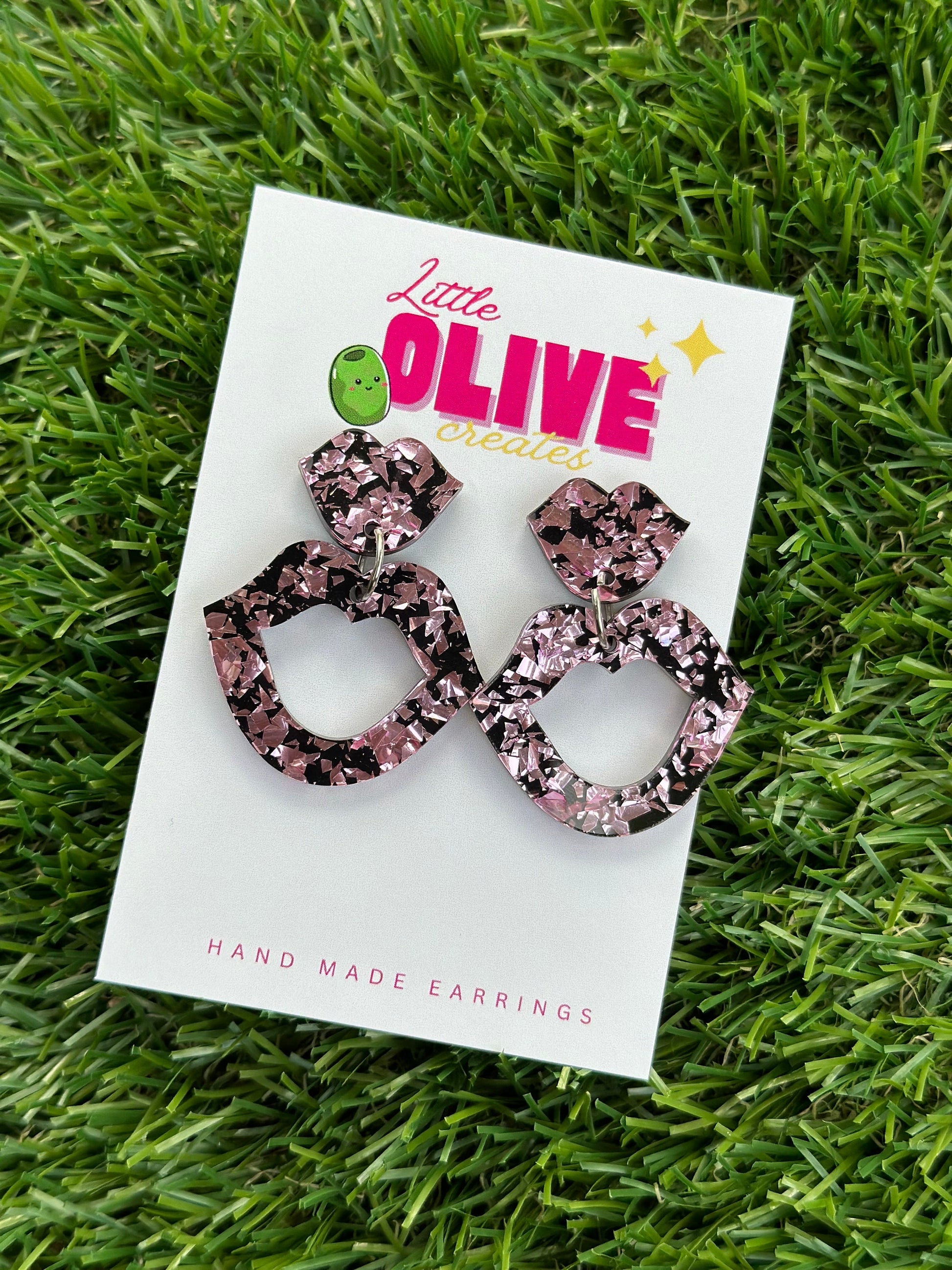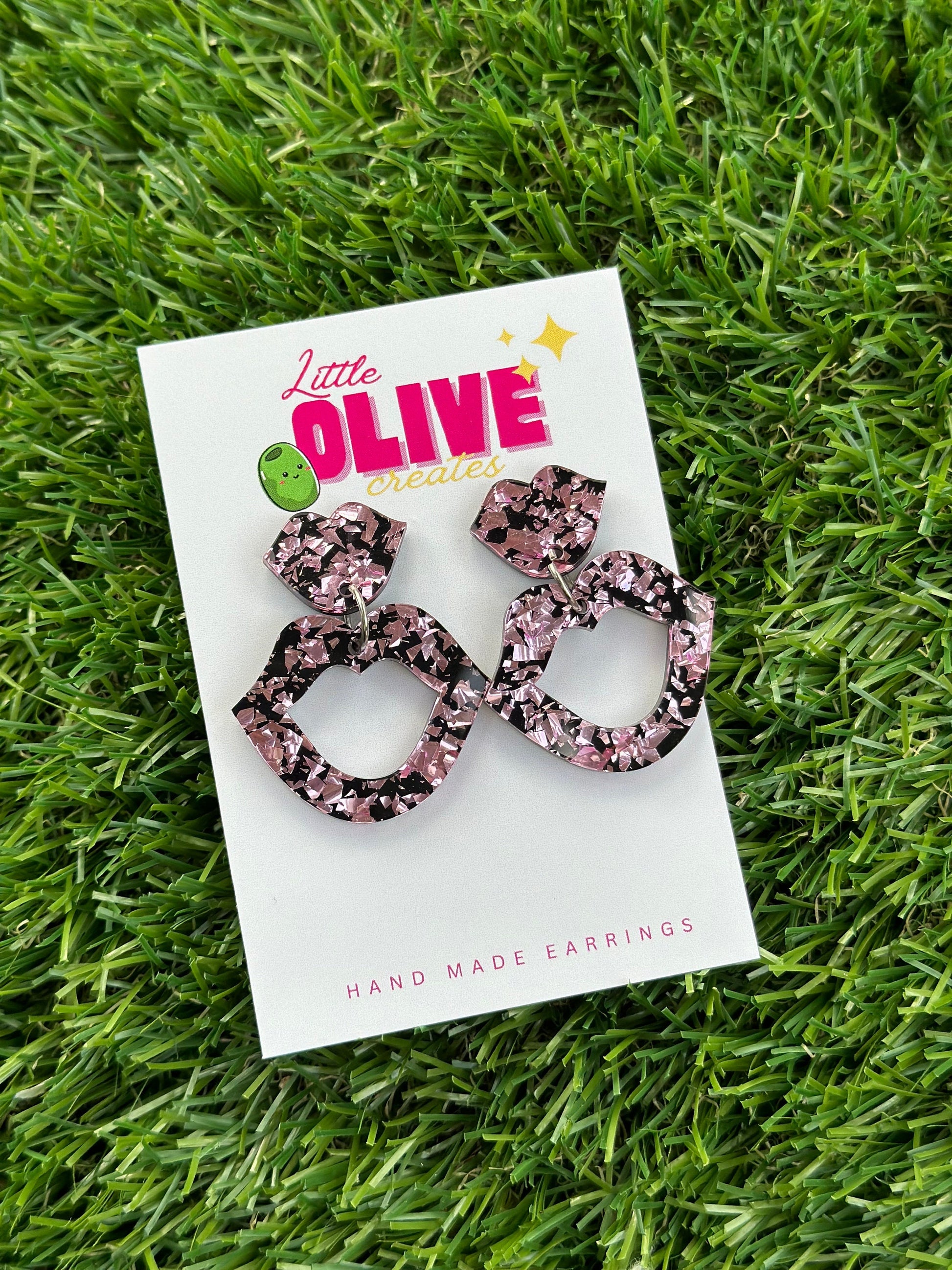 Shimmering Glittery Lips Drop Dangle Earrings
