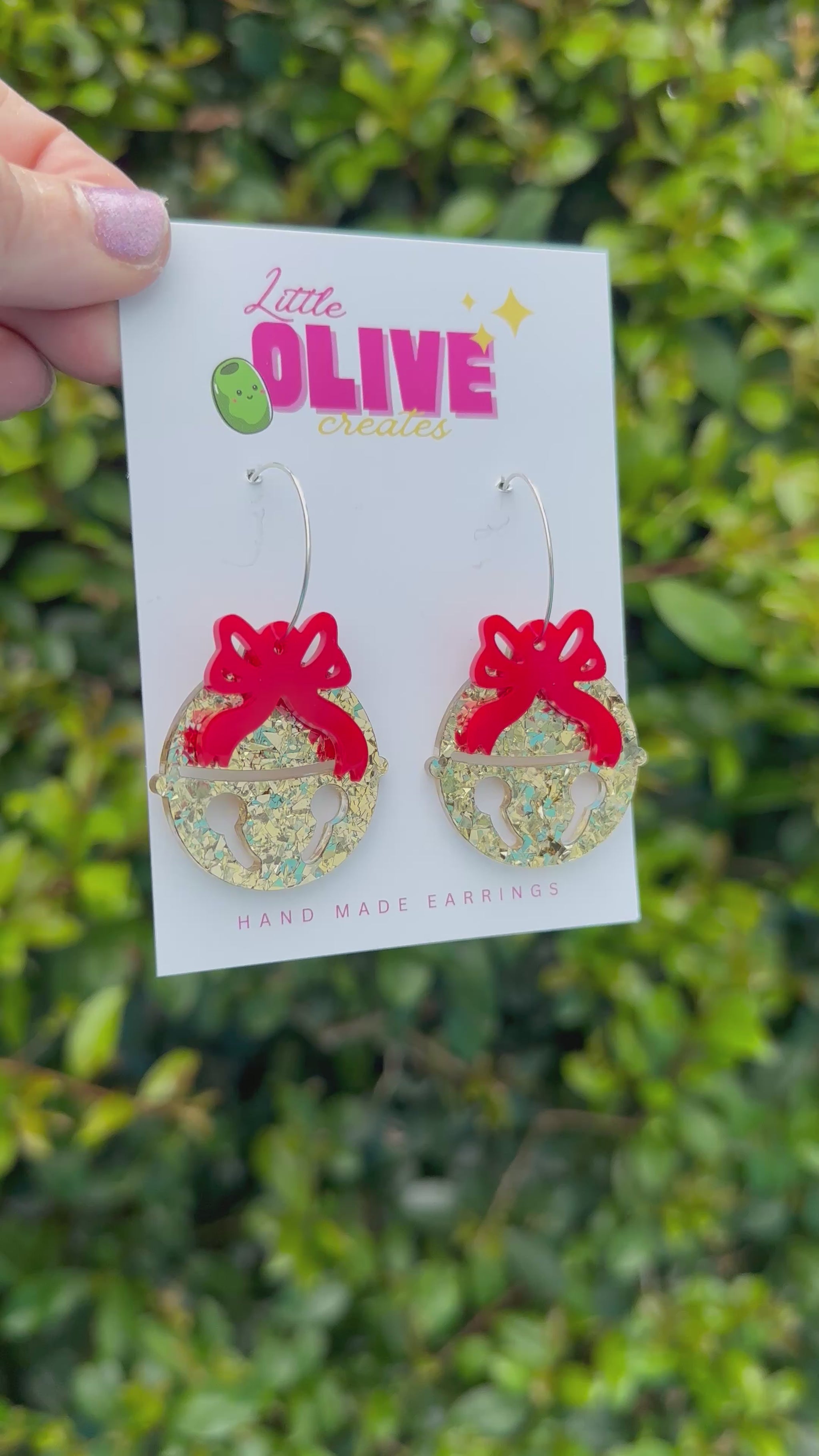 Make your festive season shine with these Golden Glitter Glitz Bauble Earrings!
