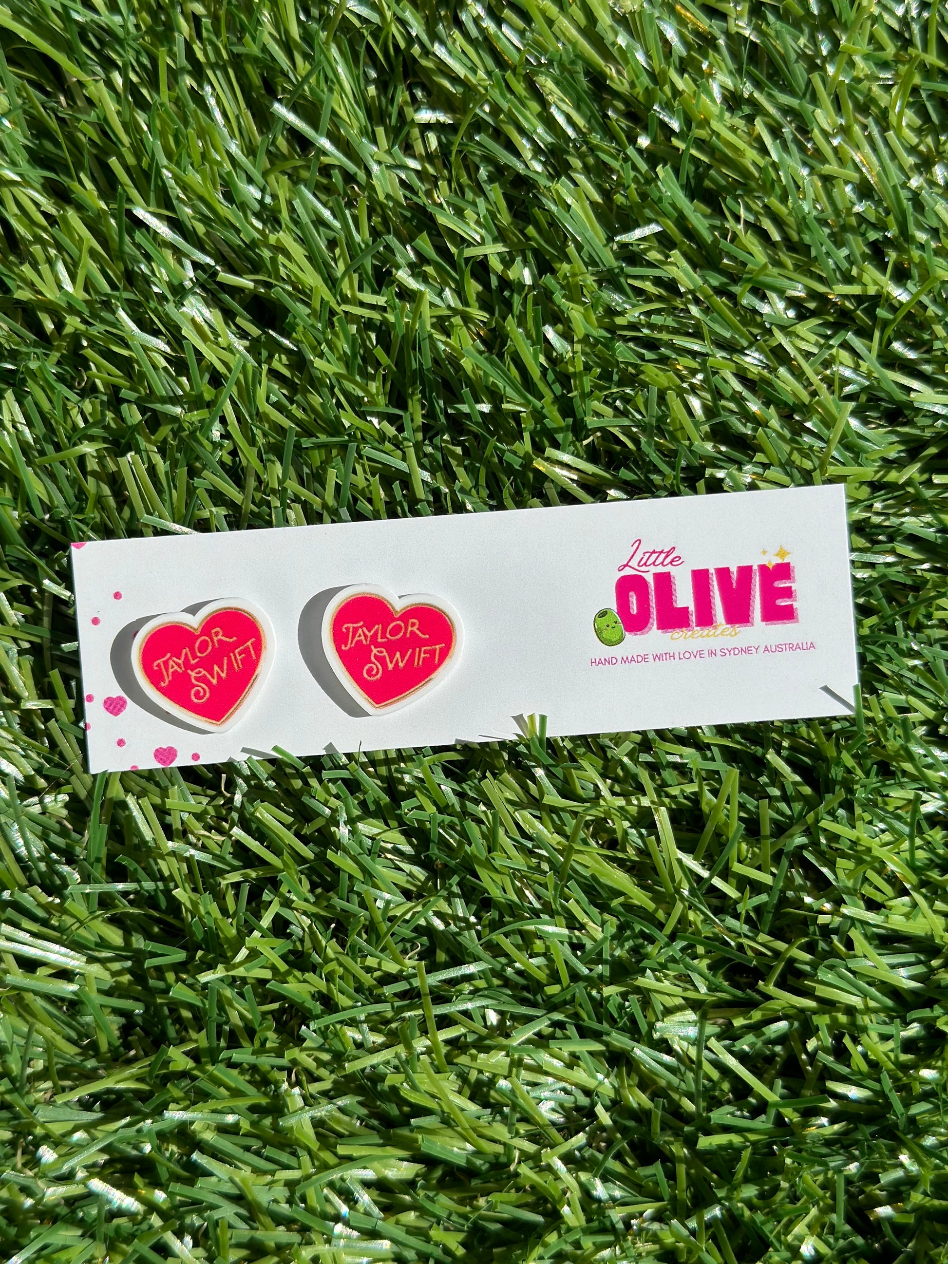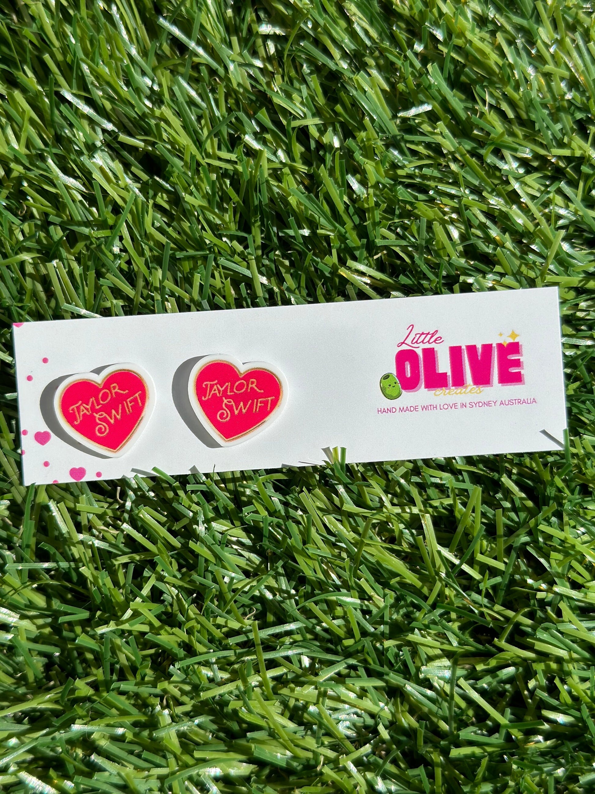 "Dive into the Swiftie Wonderland with these cute Tay Tay heart earrings.
