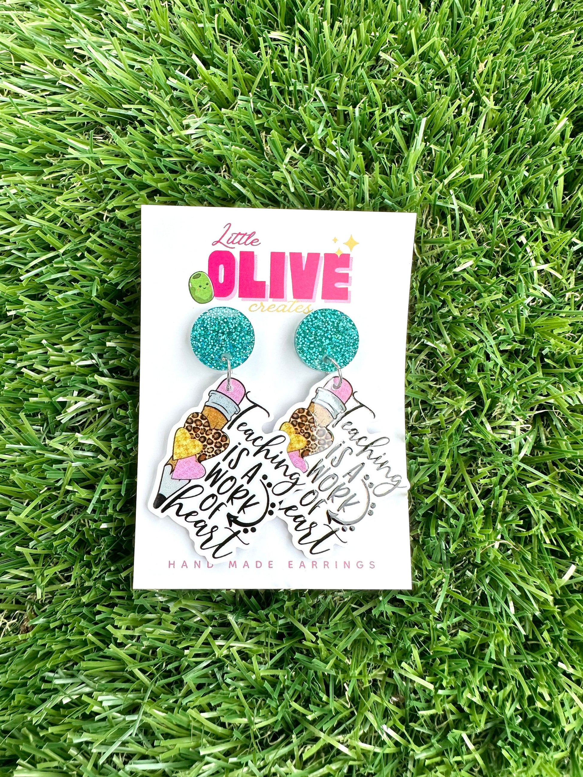 Teaching is a Work of Heart' Earrings - Inspiring Educators